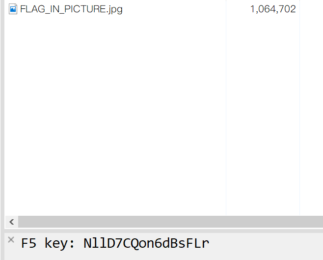 提示F5 key,于是得知是F5隐写,在网上找了对应的工具,用key解密得到一串hex